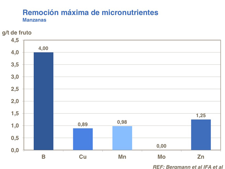 De los micronutrientes, las necesidades son muy pequeñas pero indispensables para apoyar buen crecimiento. Boro, cobre, manganeso y zinc son elementos claves en los frutos de pepita.