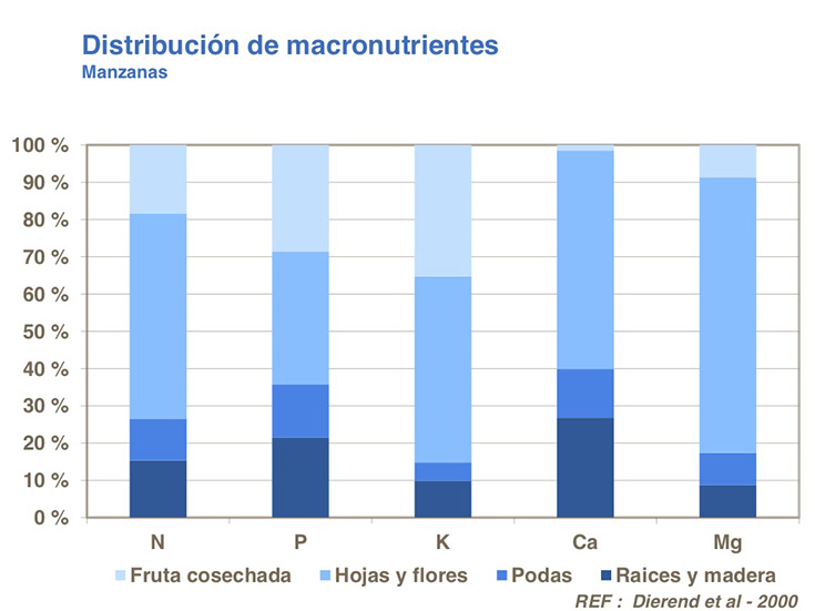 Calcio, potasio y nitrógeno son los macronutrientes más importantes que requiere una huerta. Es importante que existan cantidades importantes de calcio en el interior del árbol para apoyar un crecimiento sano. Mientras solo una pequeña proporción del calcio termina en el fruto, esa pequeña cantidad es importante y crítica e imprescindible para disminuir problemas de calidad durante el almacenaje.
