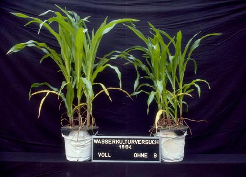 Deficiencia de boro vs plantas sanas made worse by