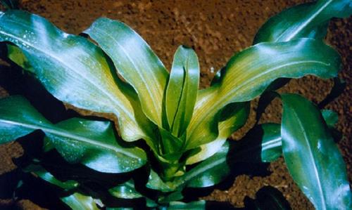 Se observan zonas cloróticas amarillo blanquecinas recorren en paralelo la nervadura central, empezando desde la base de las hojas.