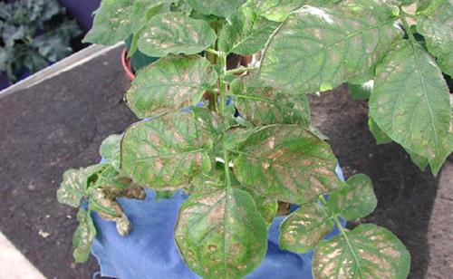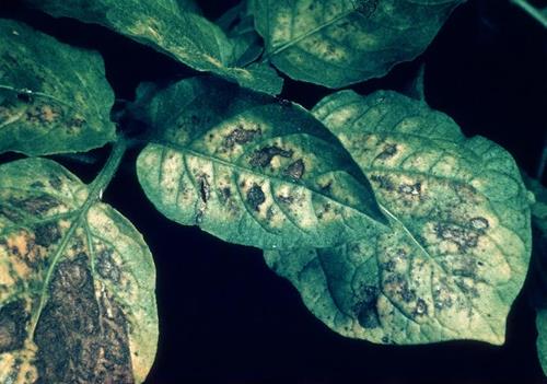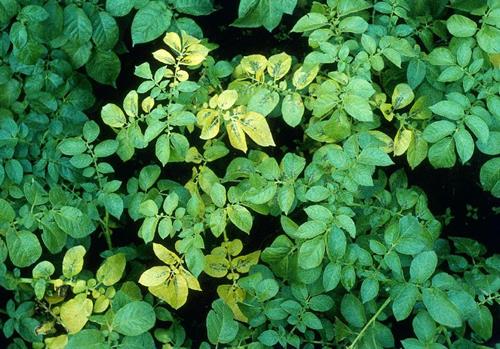 La deficiencia de manganeso es similar, aunque en esta el amarillamiento de los bordes de la hoja comienza en las hojas más jóvenes.