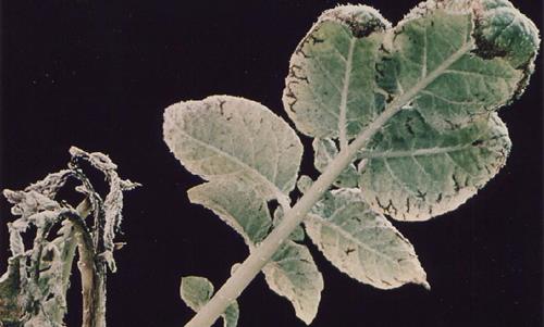Puede confundirse con el mildiú (Phytophthora infestans), aunque la deficiencia de manganeso no tiene olor ni necrosis en la base del tallo.