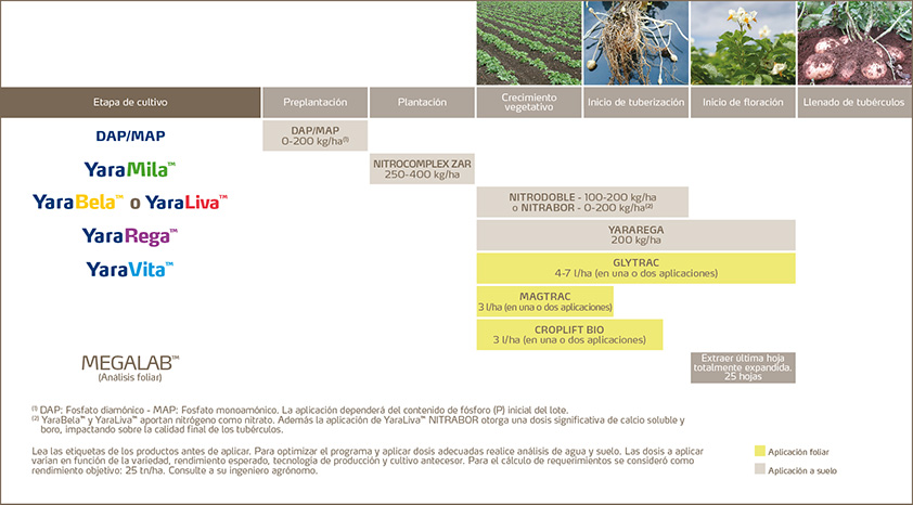 Los programas de fertilización de Yara podrán ayudarle en obtener un mejor desempeño de su cultivo. Conocé nuestros programas de fertilización para papa consumo y papa semilla, específicos para cada objetivo.