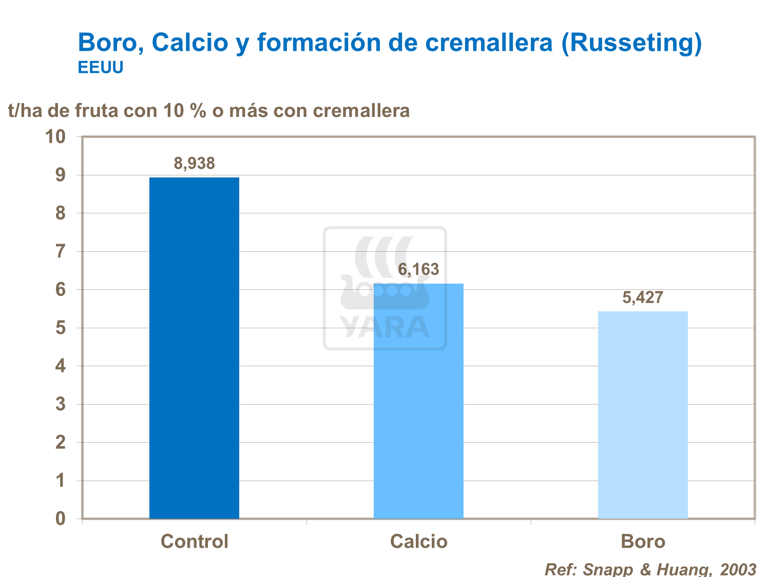 La carencia de boro (y calcio) aumenta las ocurrencias de 'russeting' como se ve en ensayos de EEUU.