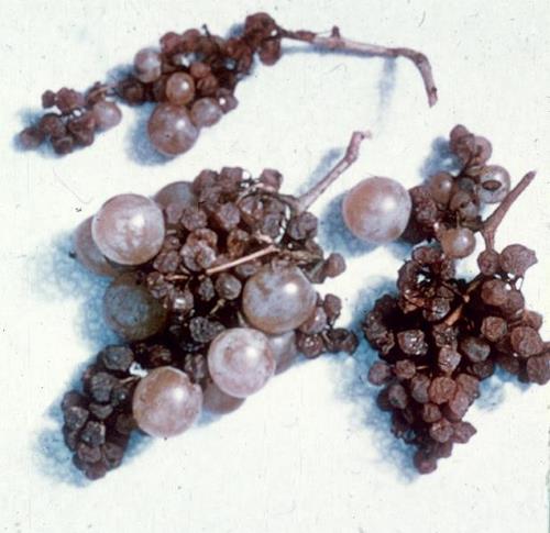 Solo cuajan algunas bayas con semilla, la mayoría se quedan pequeñas y sin semilla. Esto se conoce como corrimiento, "millerandage" o "shot berry"