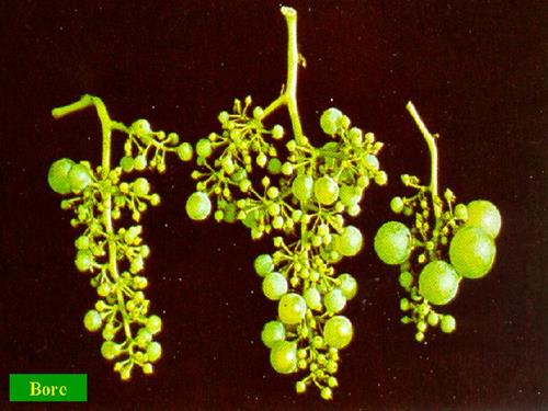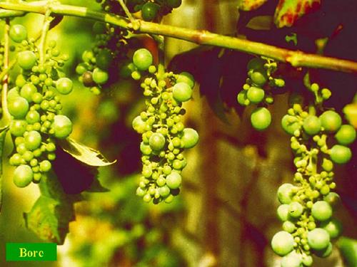 La deficiencia de boro es una de los problemas más graves en la vid no producido por plagas. Se puede observar especialmente en suelos muy ácidos (pH entre 3,5 y 4,5).
